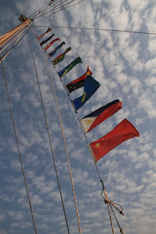 The outrigger canoe of the crossing is inspired by a historical plan drawn in Tahiti by the Admiral Paris around 1820 (standard plank of wood and stich construction).
